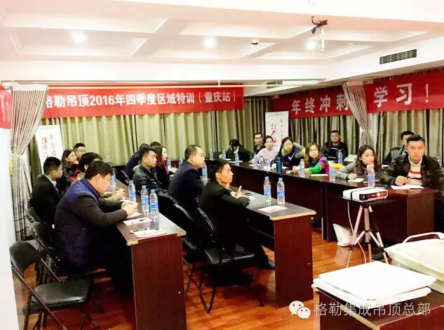 就在全國喜迎一年一度的11.11的時候,格勒集成吊頂卻在來和你相遇的路上。繼北京,太原站后,11月9號,格勒吊頂“好店面、新終端”推進會暨四季度區(qū)域特訓(xùn)會第三站在美麗的山城重慶開啟,公司營銷總監(jiān)京總、活動組長張總和區(qū)域經(jīng)理親臨活動現(xiàn)場,與格勒家人相聚一堂,共同探討學(xué)習(xí)產(chǎn)品知識、分享銷售經(jīng)驗及制定戰(zhàn)略目標。