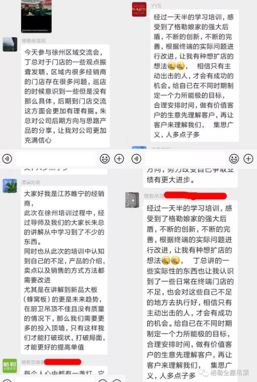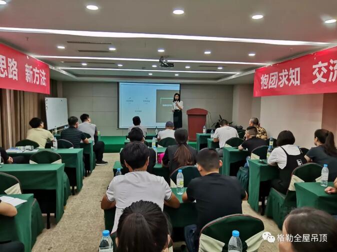"我們唯有加速奔跑,才能存活在這個時代。"翌日,格勒吊頂營銷戰(zhàn)略合作伙伴目思營銷丁總,以“頂墻行業(yè)實戰(zhàn)培訓(xùn)”、“經(jīng)銷商交流機制”為主題通報,在品牌建設(shè)、宣傳推廣、渠道建設(shè)、店面展示、建立制度、規(guī)范終端等問題做了強化培訓(xùn)。其深厚的實戰(zhàn)經(jīng)驗及出彩的解說讓在場家人茅塞頓開。