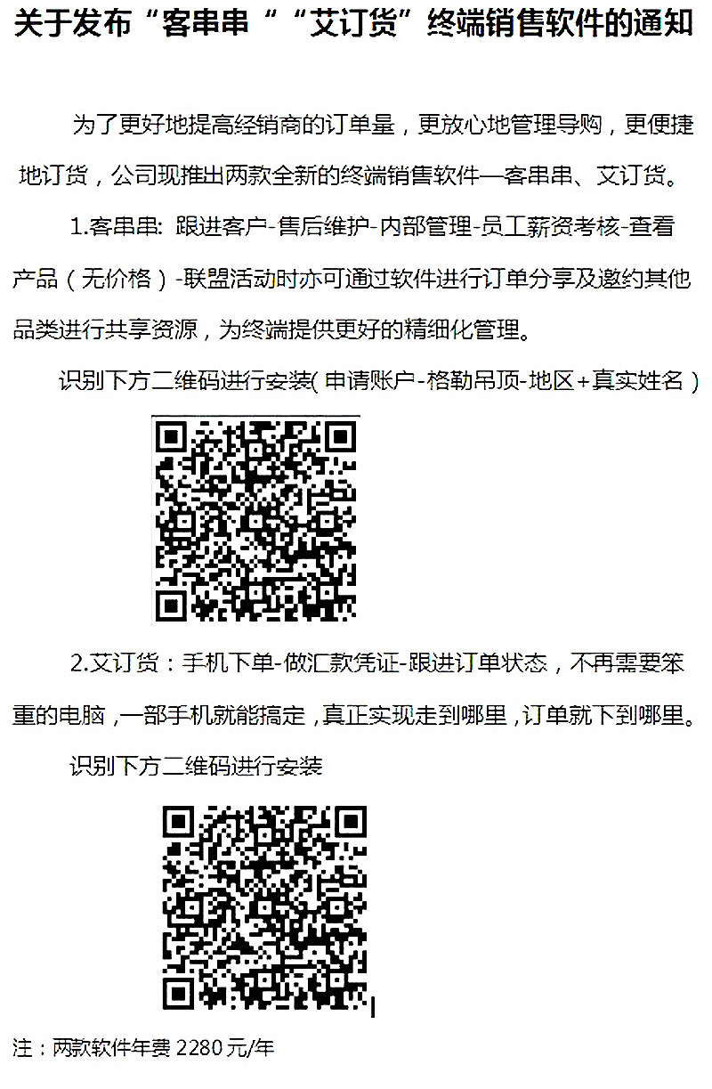 祝賀格勒全屋吊頂開發經銷商門店導購軟件